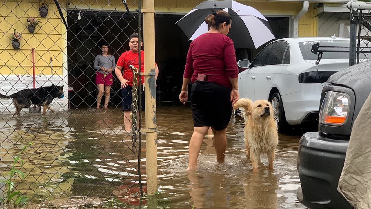 En algunas casas el agua llega hasta la cocina y los residentes se quejan porque siempre les pasa igual. Se pronostican más lluvias para este martes.