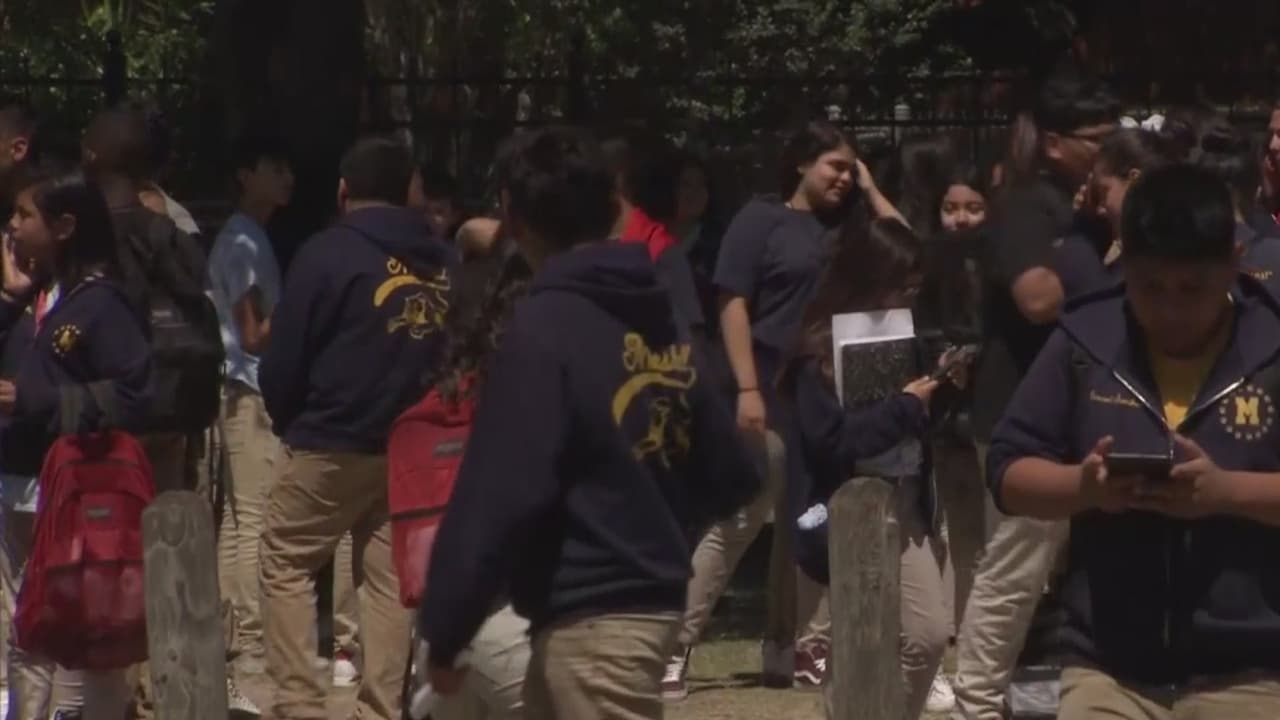 Voluntarios y padres acompañan a casa a alumnos de North Side en el último día de clases
