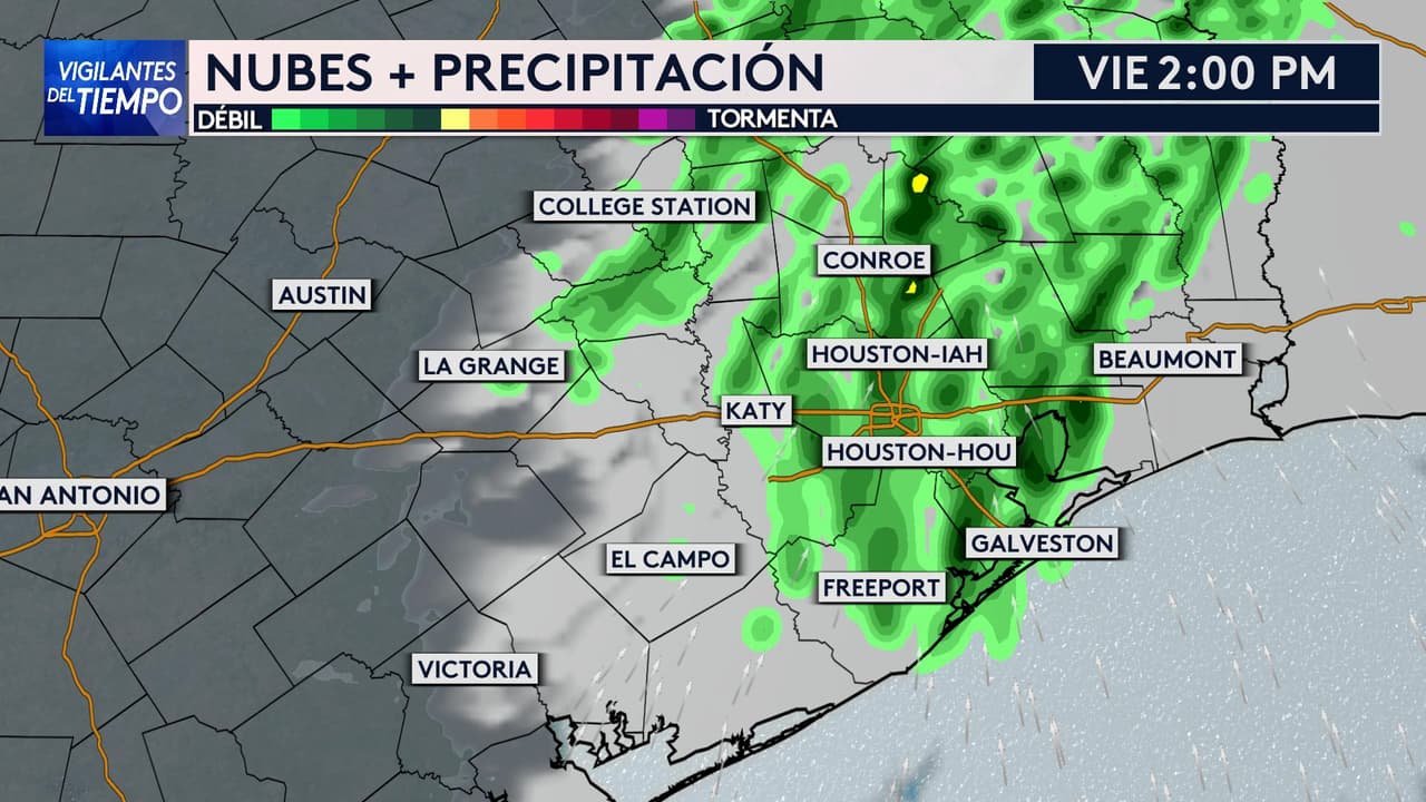 Anthony Ortíz, meteorólogo de Univision 45, explica que las precipitaciones llegarán débiles desde el mediodía en el área de Houston. Hay riesgo mínimo de tiempo severo.