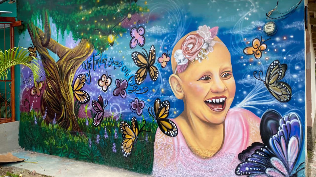 Ney Fernández Koch creo el mural en Belén, Lempira, Honduras. “Yo también sonrío con Gigi, una frase que cambiará mi vida. Un bonito homenaje para este hermoso angelito que hoy nos cuida desde el cielo”, indicó el autor en su página de Facebook donde presentó su creación.