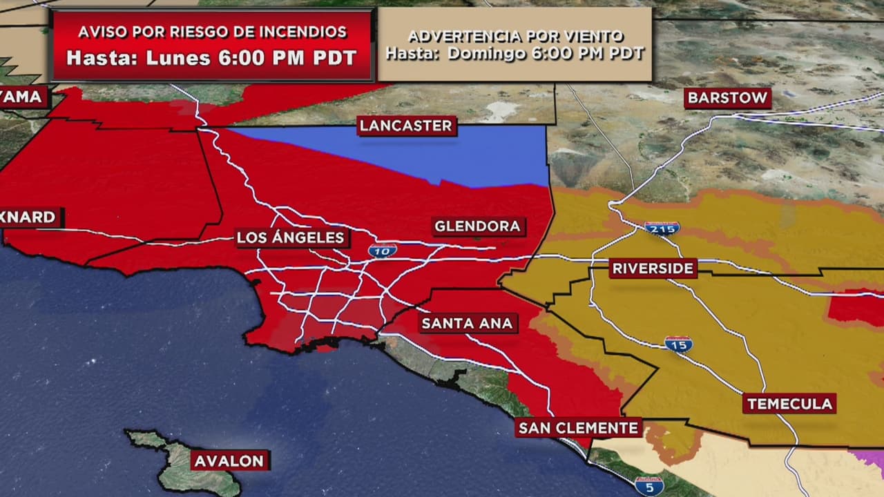 El Servicio Meteorológico Nacional (NWS) emitió un aviso por riesgo de incendios en el sur de California, que permanecerá vigente hasta el lunes a las 6:00 pm. Las máximas se mantendrán en los 72 grados Fahrenheit y las mínimas en los 55 grados.