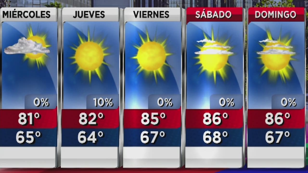 El pronóstico indica que las temperaturas máximas alcanzarán los 81 grados Fahrenheit y las mínimas los 65 grados. No se prevén lluvias para la jornada.