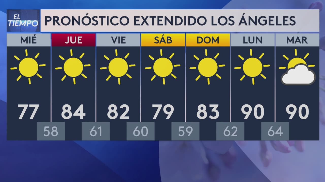 Se pronostica que durante la jornada las temperaturas máximas alcanzarán los 77 grados Fahrenheit y las mínimas los 58 grados. No se prevén precipitaciones.