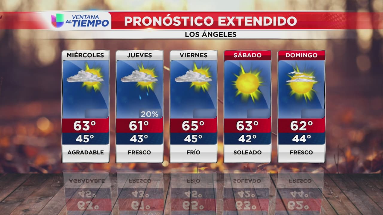 Según el pronóstico, la brisa soplará desde el pacífico por una banda frontal que se mueve cerca a la zona costera. Las temperaturas oscilarán entre los 45 y los 63 grados Fahrenheit.