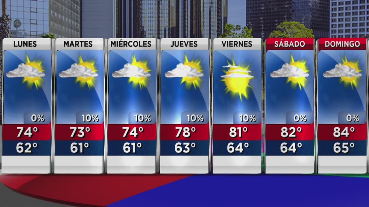 Según el pronóstico, las temperaturas máximas alcanzarán los 74 grados Fahrenheit y las mínimas los 62 grados. No se prevén precipitaciones durante la jornada.