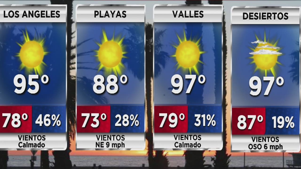 El pronóstico indica que durante la jornada las temperaturas máximas alcanzarán los 95 grados Fahrenheit y las mínimas los 66 grados. Se prevén cielos soleados y bajos niveles de humedad.