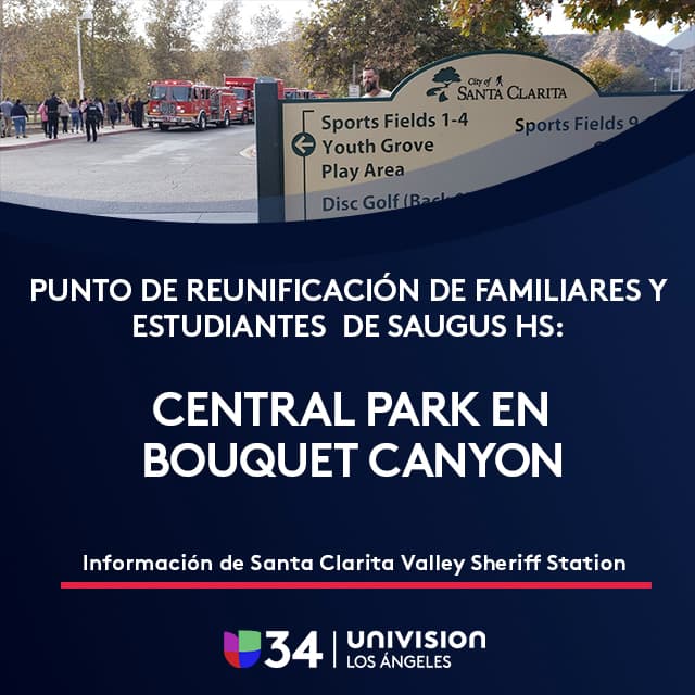 Los estudiantes de Saugus fueron llevados a un centro de reunificación en Central Park en Bouquet Canyon, ubicado en el número 7150 Bouquet Canyon Road, en Santa Clarita, CA 91350.