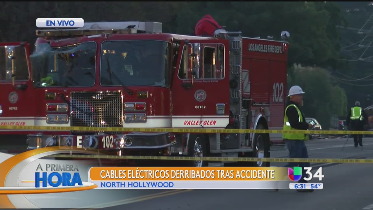 El choque de un camión de bomberos dejó apagones en una zona residencial en el norte de Hollywood.