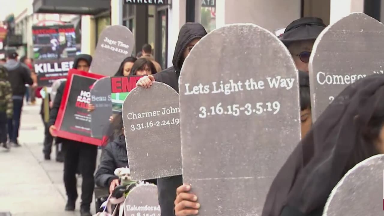 Activistas de Pasadena marchan en honor a los caballos muertos en el hipódromo de Santa Anita