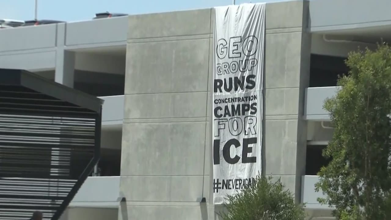 Activistas marchan en Westchester en contra de los centros de detención Geo y bloquean el acceso a edificio