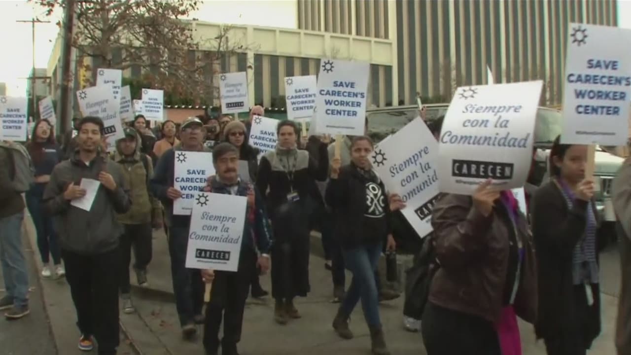 Activistas se manifiestan en contra del cierre de un centro de trabajo en Los Ángeles