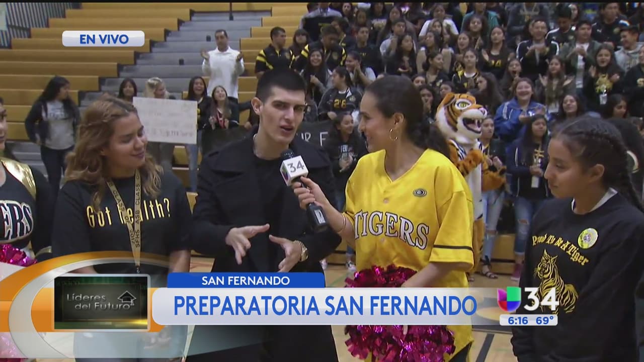 El cantante visitó a los estudiantes de la preparatoria San Fernando en el sur de California.