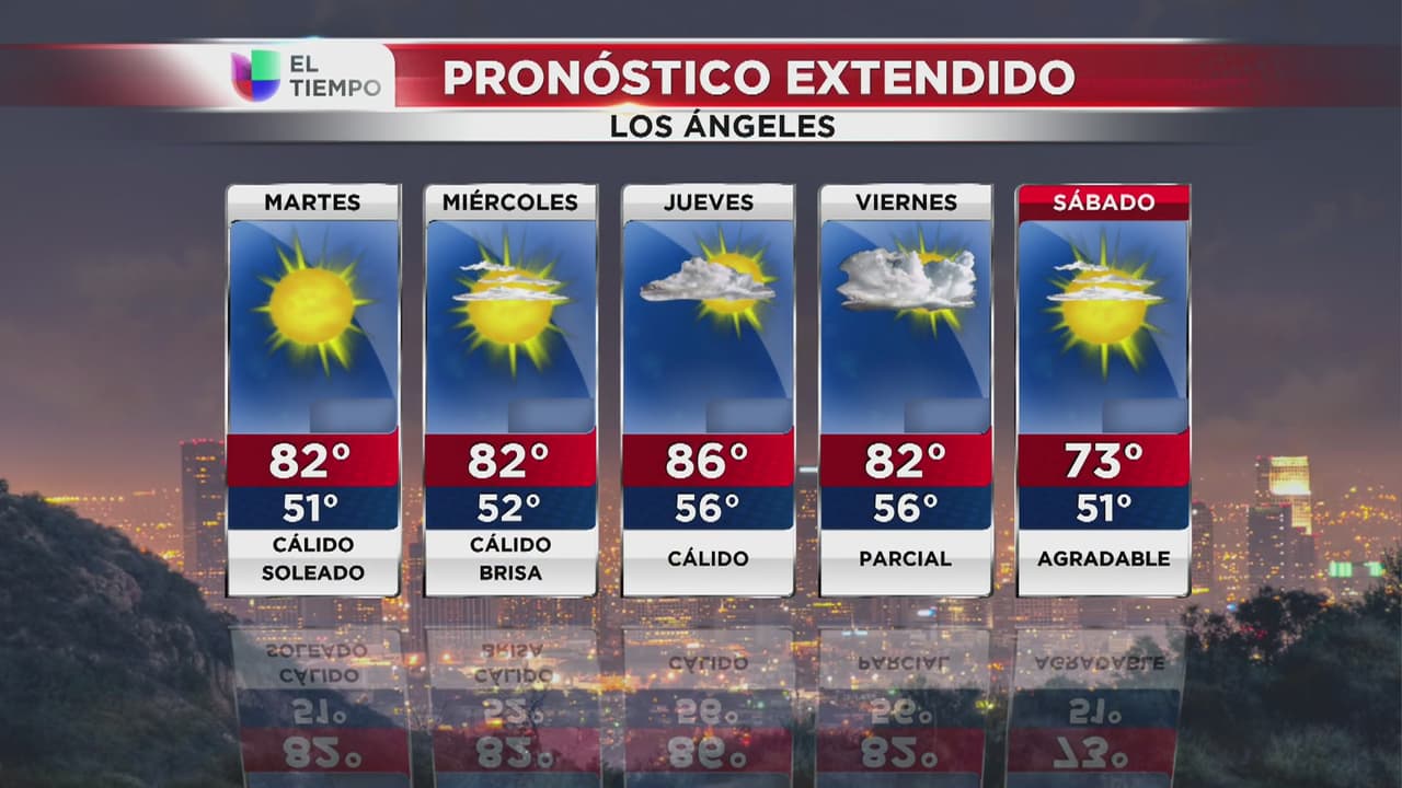 Se esperan condiciones mayormente secas, cielos despejados y que las temperaturas estén entre los 51 y 82 Fahrenheit en Los Ángeles y sus alrededores durante el día.