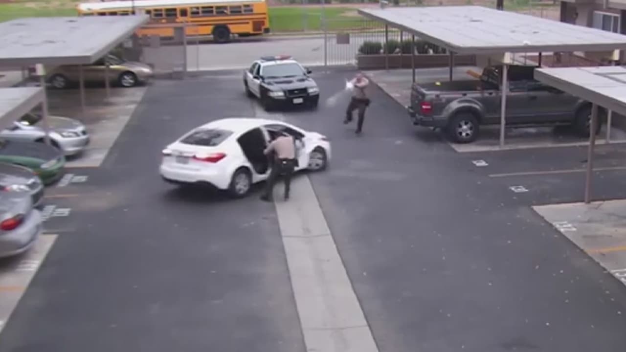 Sobre la cinta las autoridades del condado de Los Ángeles declararon, este jueves que el sospechoso había usado su automóvil como un "arma", lo que llevó a los agentes a disparar.