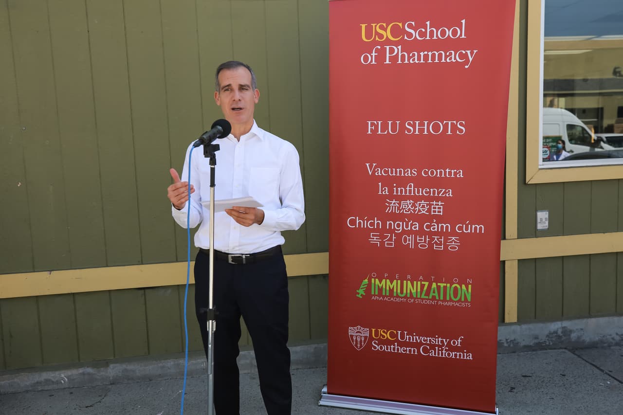 "Estamos lanzando un nuevo programa piloto para brindar vacunas contra la gripe por toda la ciudad. Las vacunas son gratis y no se necesita una cita", dijo Garcetti desde una de las sedes de la Universidad del Sur de California en Boyle Heights.