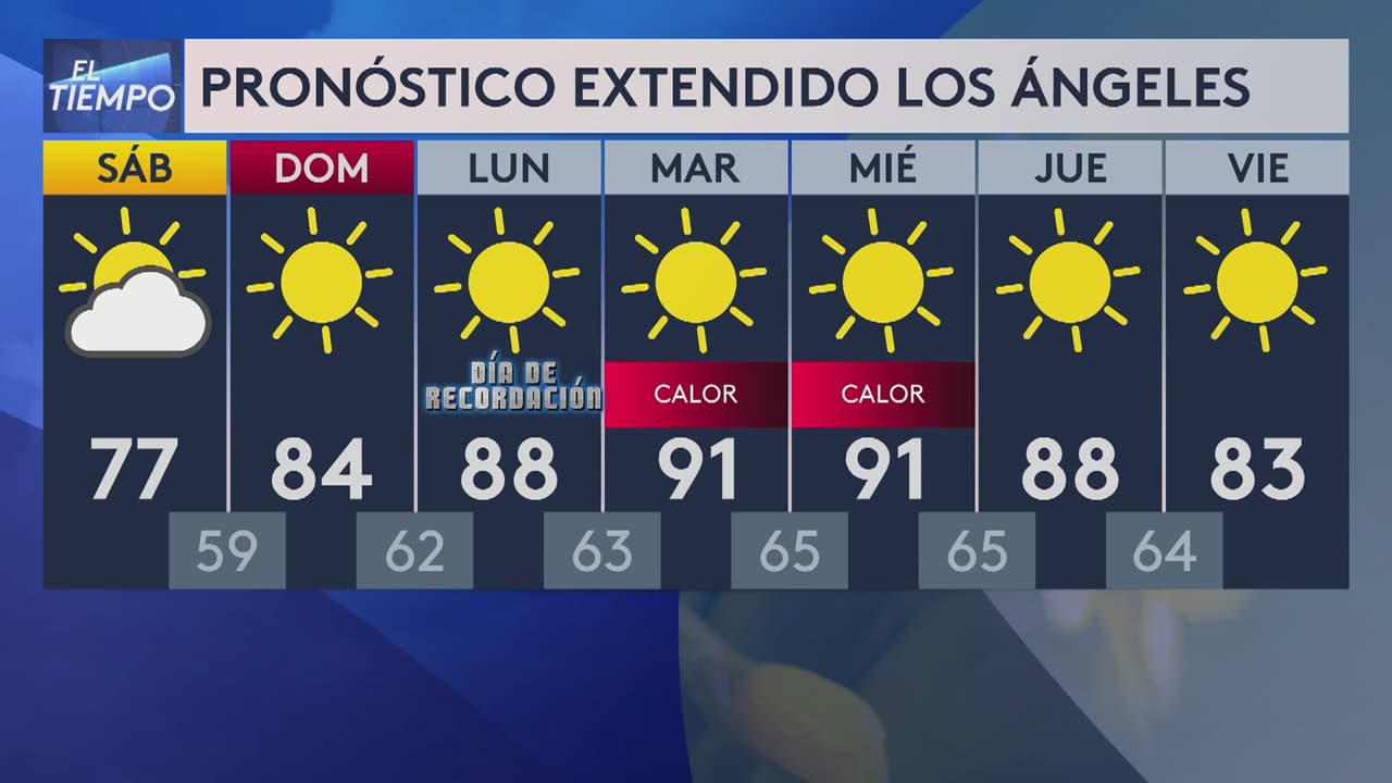 Las temperaturas este sábado y domingo estarán entre los 70 y 80 grados Fahrenheit, sin embargo a partir del lunes un sistema de alta presión llegará al sur de California con temperaturas que alcanzarán los tres dígitos.