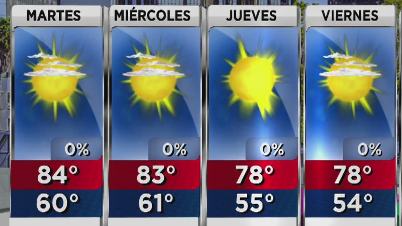 En algunas zonas del sur de California hay alerta por los fuertes vientos y la probabilidad de incendios. En Los Ángeles la temperatura máxima será de 84 grados, durante un día soleado y sin pronóstico de lluvia.