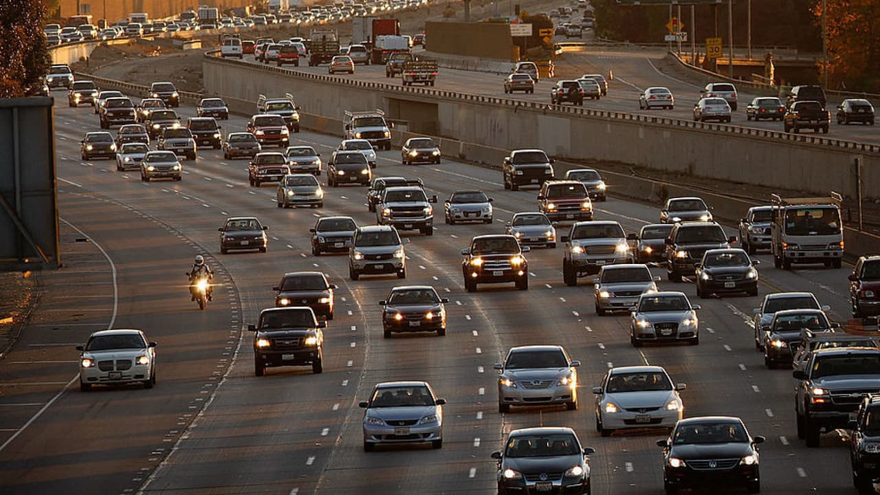 Alto volumen vehicular sobre la Autopista 405 de Los Ángeles en sentido norte la mañana de este miércoles