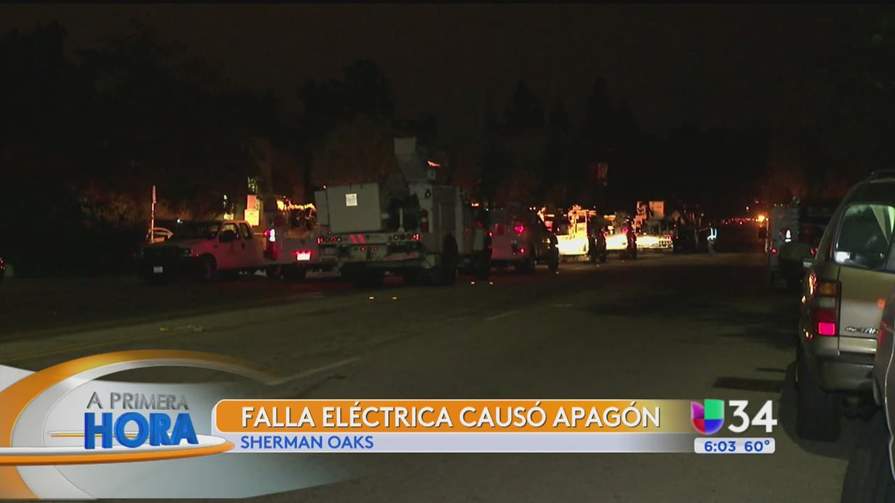 Miles de residentes en Studio City quedaron sin servicio eléctrico tras una falla en el equipo de una estación del departamento de energía la noche del miércoles.
