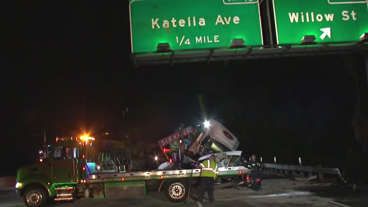 Aparatoso accidente de dos camiones en Long Beach mantiene cerrada la autopista 605 hacia el sur