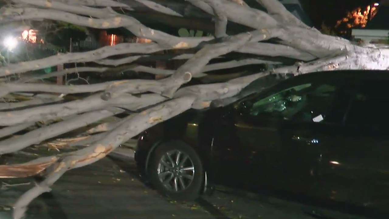 Árboles caídos y otros daños por los fuertes vientos en East Hollywood