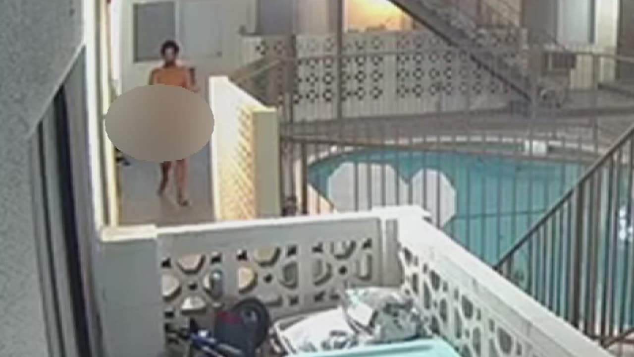 En cámaras de seguridad ha quedado registrado cómo este sospechoso deambula desnudo por los pasillos del complejo y muchas veces porta un cuchillo con actitud amenazante. Vecinos han denunciado esta situación a la policía y muchos aseguran que la responsable es una residente del lugar que le permite el paso al sujeto, sin importarle la seguridad de los demás.