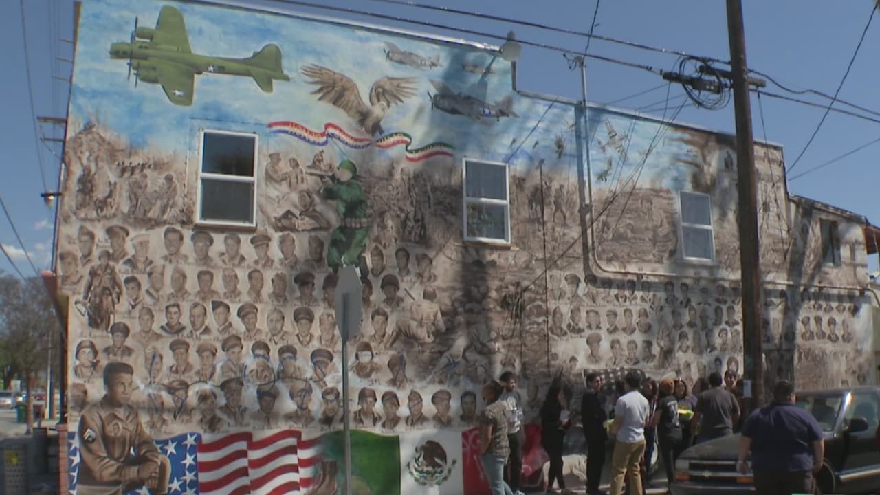 La pintura realizada por el artista Carlos Aguilar, en honor a los veteranos mexicano-estadounidenses que lucharon en el Ejército de Estados Unidos, fue vandalizada dos veces durante el mes pasado.