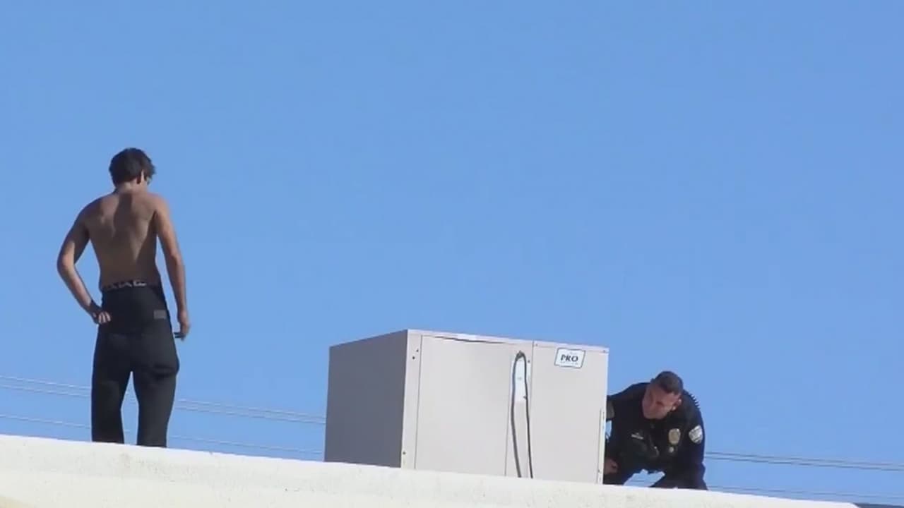 Vicente García, de 30 años de edad, se paseaba por el techo de la estructura sin camisa y actuando de forma extraña. Varios oficiales de Palm Springs tuvieron que seguirlo durante varios minutos para poder detenerlo.