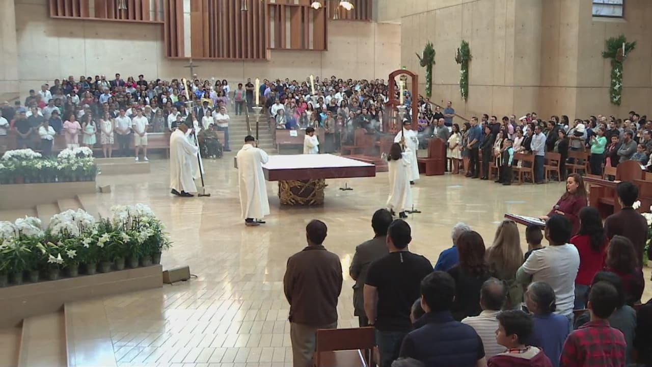 Cientos de feligreses acudieron a la Catedral de Nuestra Señora de Los Ángeles para escuchar la misa de la Pascua de la Resurrección de Jesucristo. Esta es la celebración más importante de la iglesia católica.
