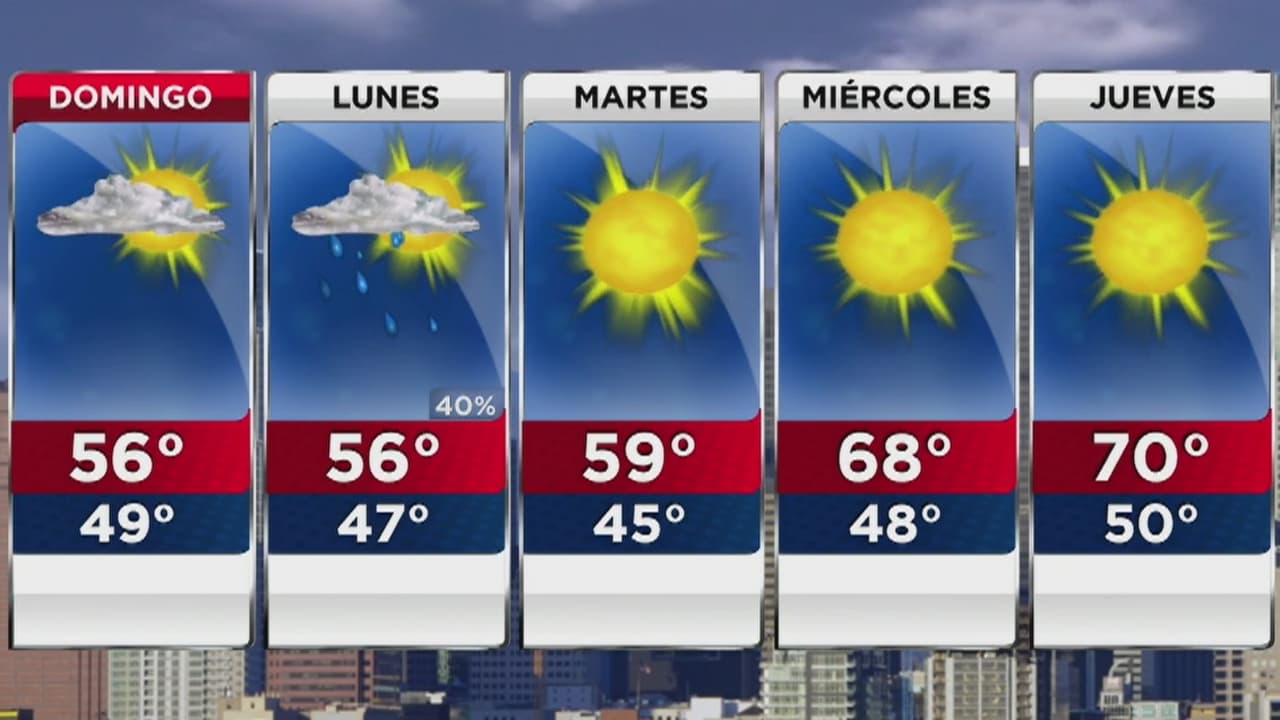 La temperatura mínima será de 49 grados Fahrenheit y máxima, de 56. Este lunes regresarán las lluvias y el termómetro oscilará entre 47 y 56 grados.