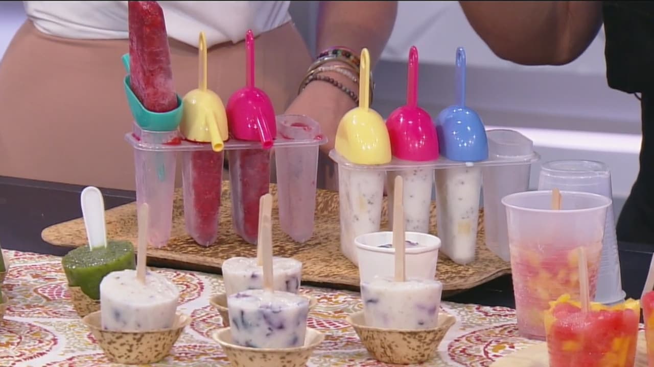 La chef Alejandra Schrader explica que las frutas serán tus aliadas para crear este delicioso y saludable postre para los niños sin necesidad de usar la licuadora. Tampoco necesitas comprar moldes, pues cualquier vaso plástico funciona para hacerlas. Además, al prepararlas en casa evitarás que los más pequeños ingieran colorantes y calorías en exceso.