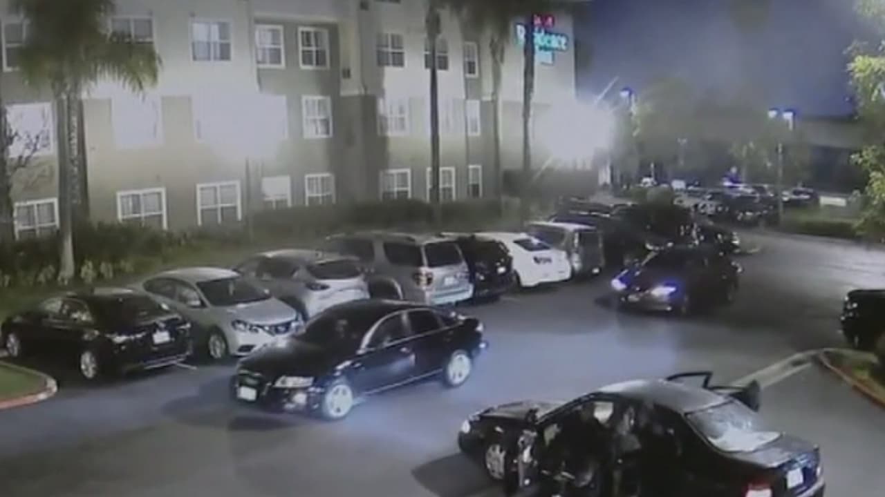 La policía está pidiendo la ayuda del público para encontrar a ocho personas señaladas de participar en golpizas y robos en el estacionamiento del hotel Residence Inn by Marriott, en El Segundo, el pasado 28 de abril.