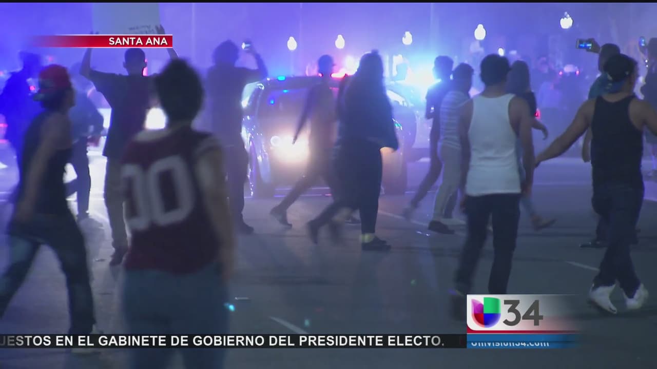 La Policía de Santa Ana reportó que los manifestantes agredieron a oficiales locales y cometieron actos de vandalismo contra patrullas y propiedad privada.