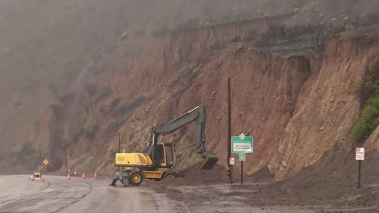 Avanzan las tareas de limpieza en un tramo de Pacific Coast Highway cerrado por deslaves e inundaciones