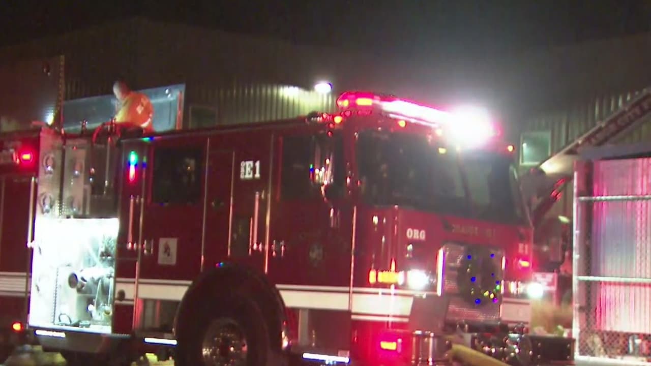 Bomberos batallan contra las llamas que afectan una estructura comercial en el condado Orange