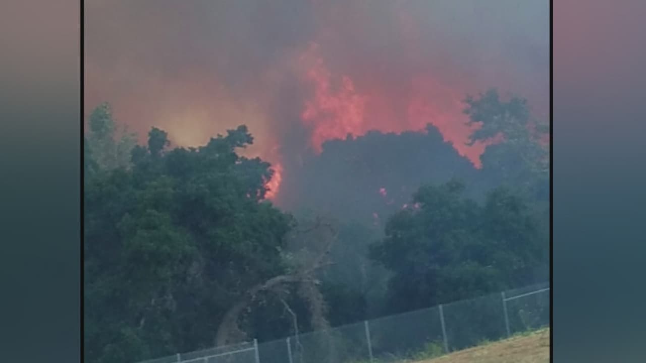 Bomberos combaten un fuerte incendio forestal en el área de Riverside