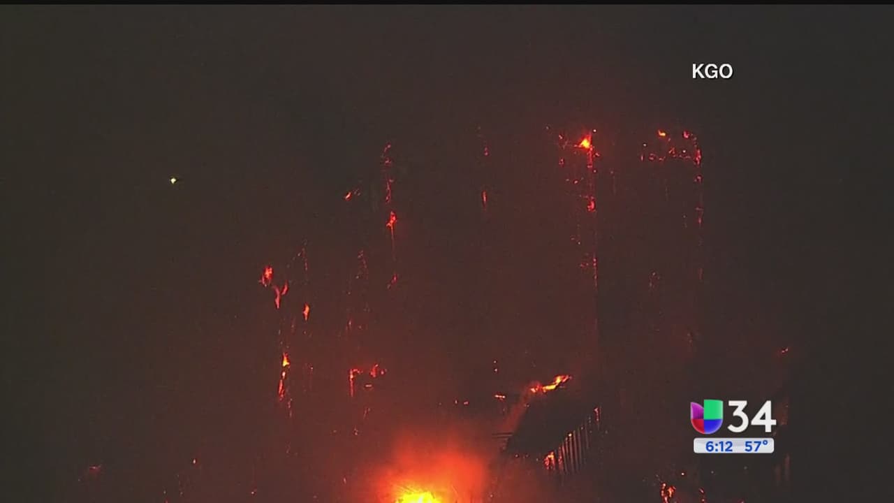 Un incendio de tres alarmas consumió un complejo de apartamentos bajo construcción en la ciudad de Oakland, California.