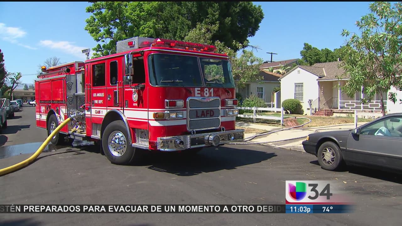 Al menos 20 bomberos fueron movilizados a la zona de North Hollywood para combatir las llamas de un incendio que dañó una cochera y un hogar.