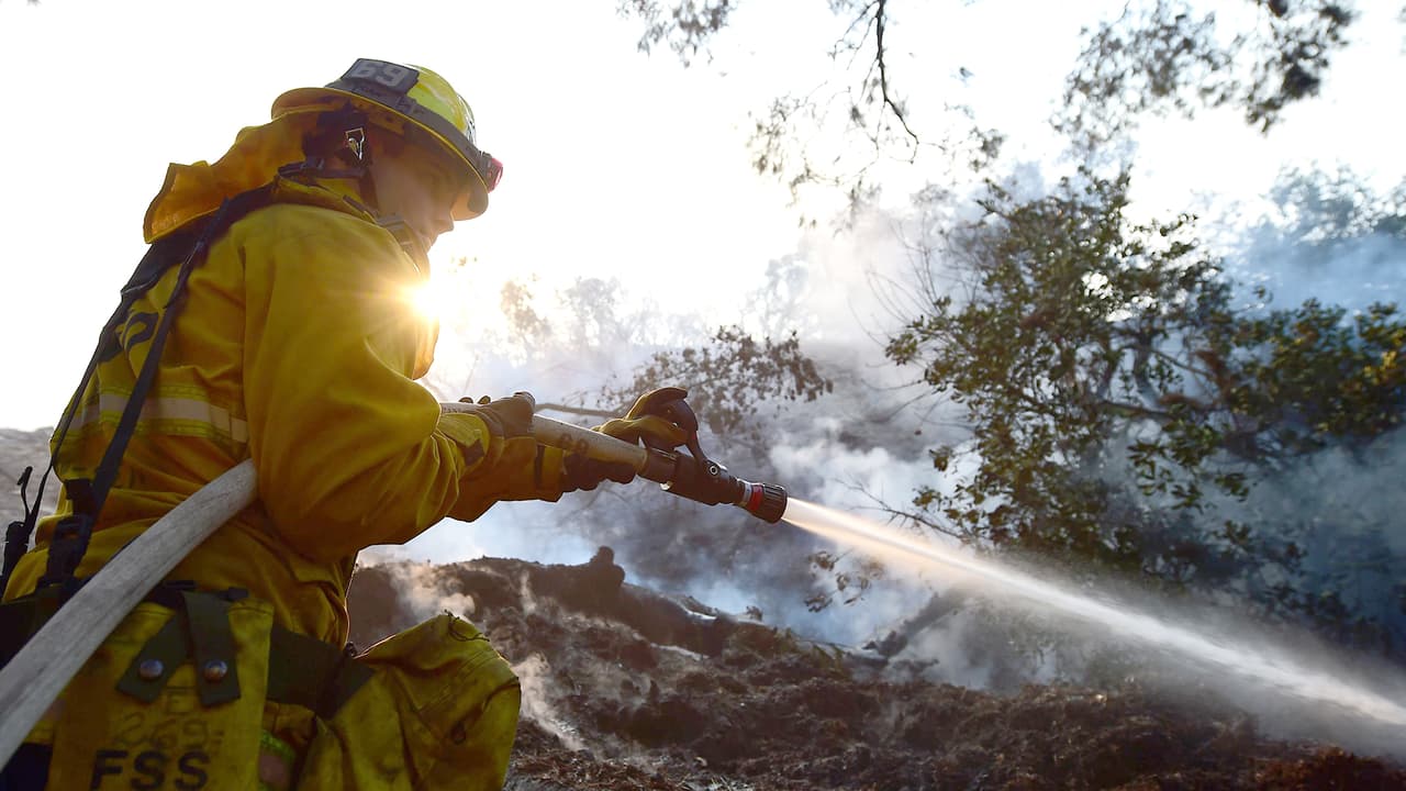 Bomberos intentan combatir un incendio de maleza en Beverly Hills, California