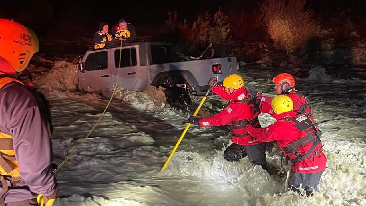 Así fue el rescate de una familia atrapada en una inundación en el condado de San Bernardino