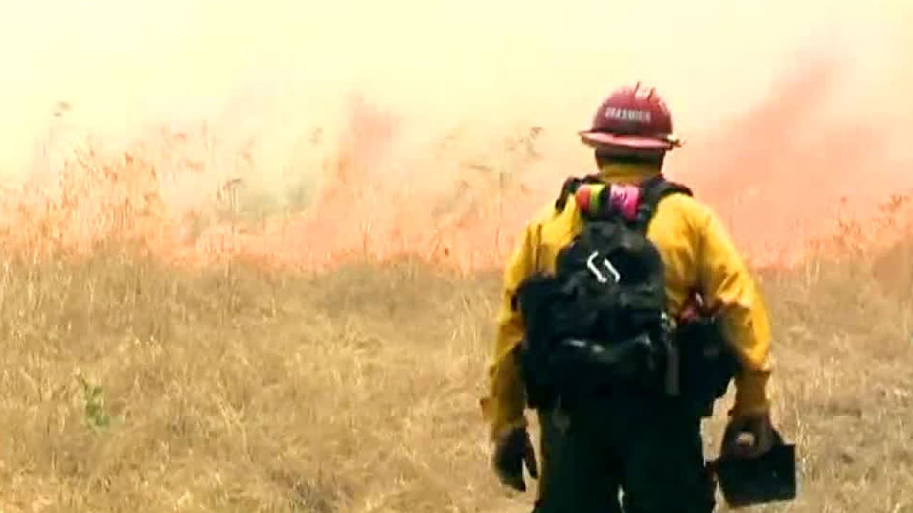 Bomberos tratan de combatir un intenso incendio forestal en San Diego