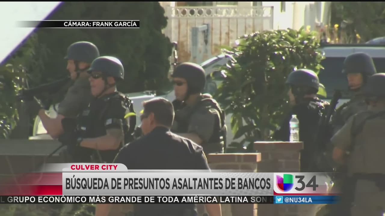 La policía realiza una intensa búsqueda de dos de cuatro sospechosos acusados de robar un banco en la mañana.