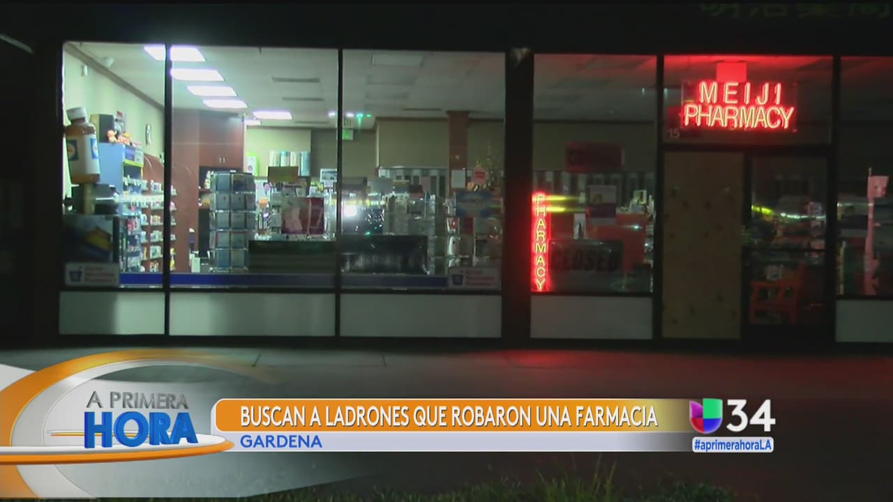Las autoridades se encuentran buscando a los ladrones que entraron a robar a una farmacia de Gardena. El incidente quedó grabado en video.