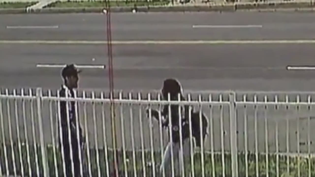 El hombre quedó captado en cámara cuando se le acerca a la joven, y ella hace un esfuerzo para esquivarlo. El caso es tratado como asalto y no como intento de secuestro. El sujeto intenta abordar a la víctima en varias ocasiones.