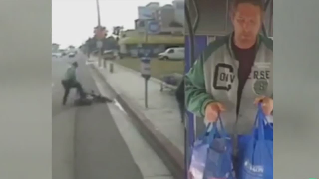 El incidente, que quedó grabado en una cámara de seguridad, ocurrió frente a una parada de autobuses. El sujeto pateó repetidamente en la cabeza a la víctima, quien perdió el conocimiento, y luego escapó con su bicicleta.