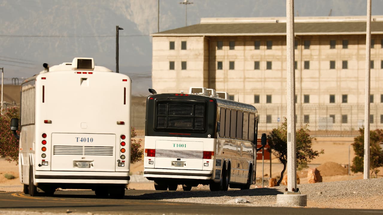Buses con inmigrantes indocumentados provenientes de Texas llegan a la cárcel de Victorville, California