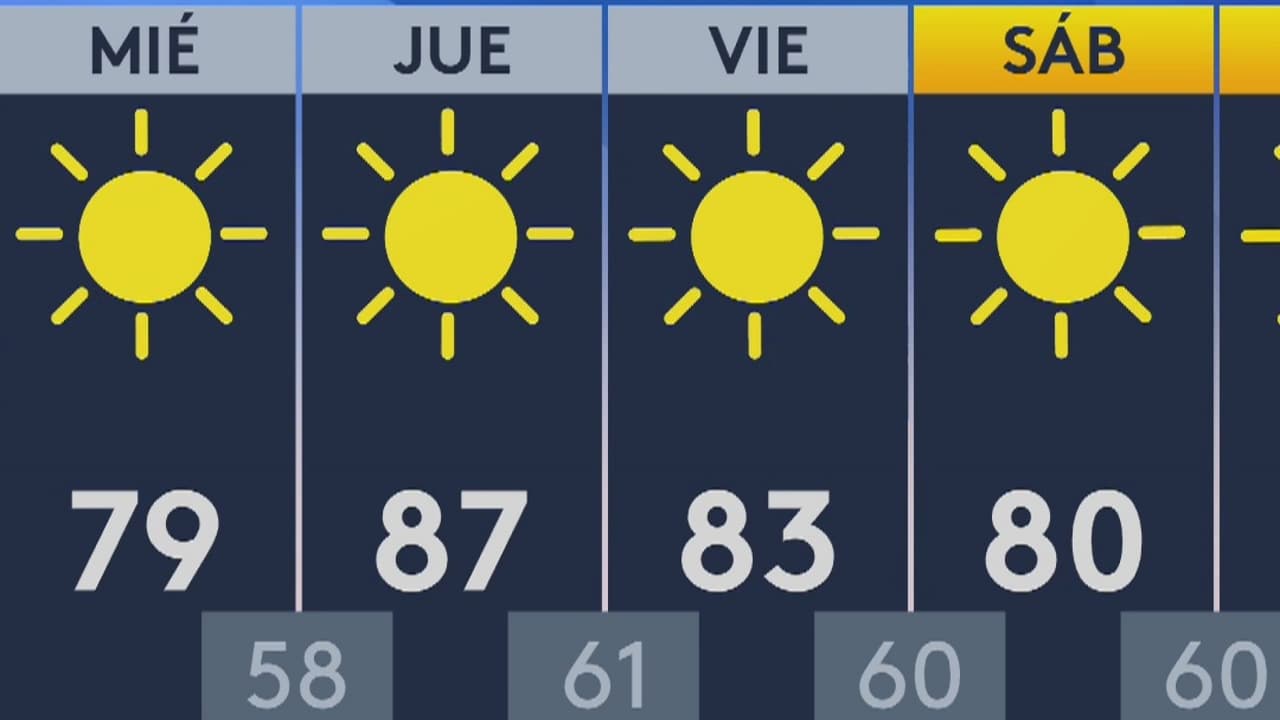 Se espera una temperatura máxima alrededor de los 79 grados Fahrenheit, acompañada de sol y viento calmado. No hay probabilidades de lluvia.