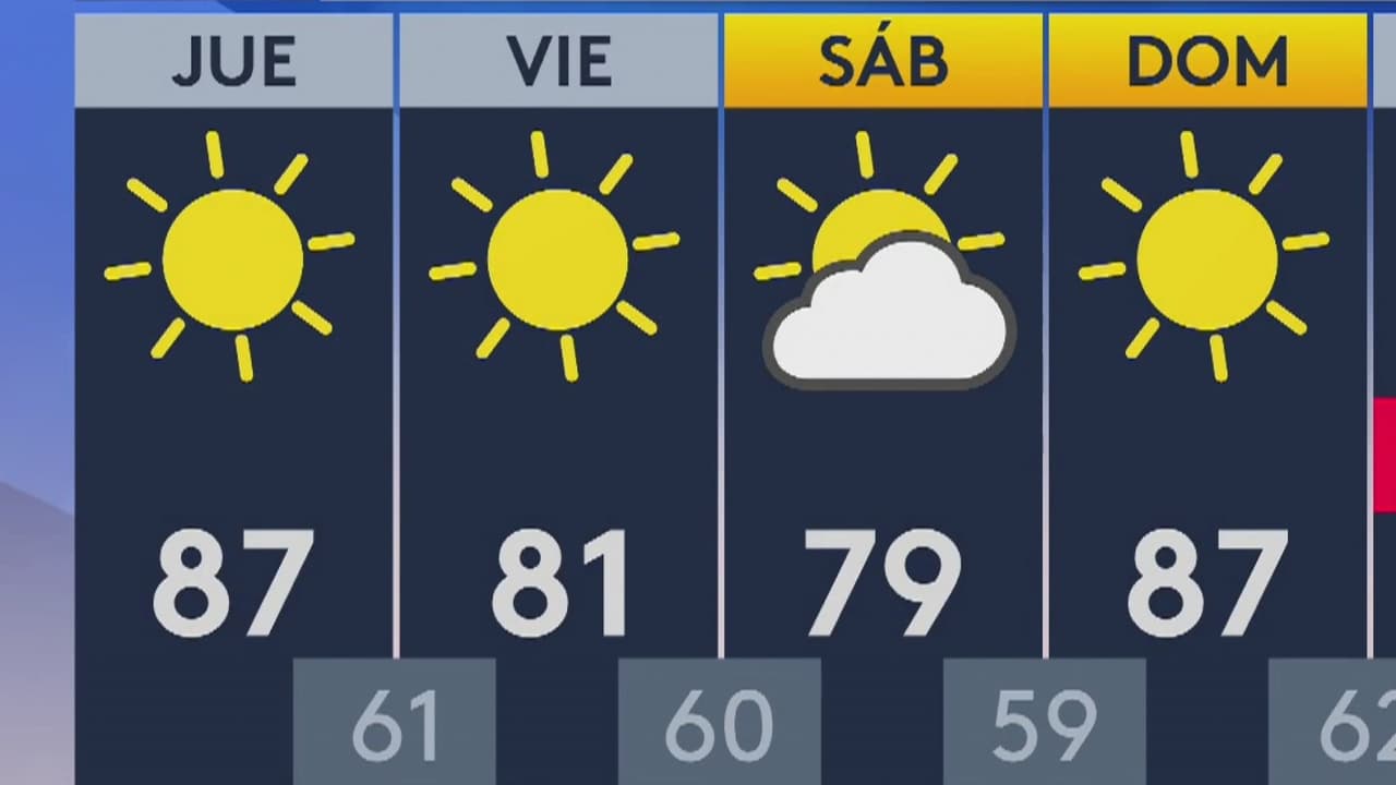 Será una tarde soleada y con temperatura máxima alrededor de los 87 grados Fahrenheit. No hay probabilidades de lluvia.