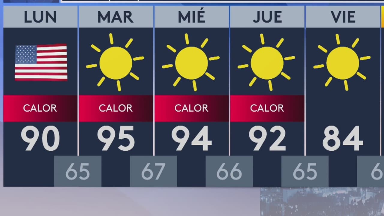 Será una tarde soleada y con una temperatura máxima alrededor de los 90 grados Fahrenheit. El viento se mantendrá calmado y las probabilidades de lluvia son bajas.