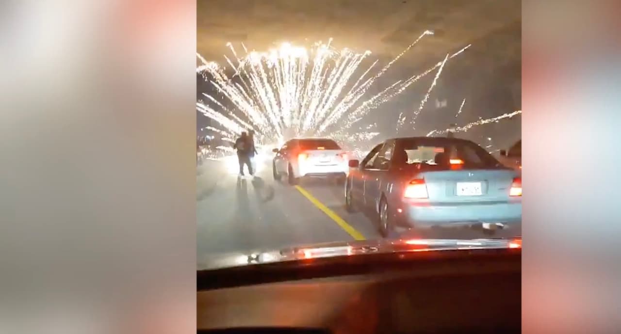 Captan en video a personas lanzando fuegos artificiales en plena autopista 5 en Norwalk